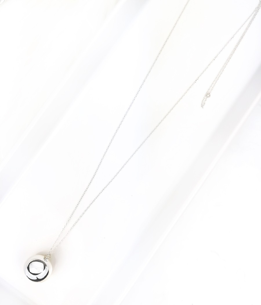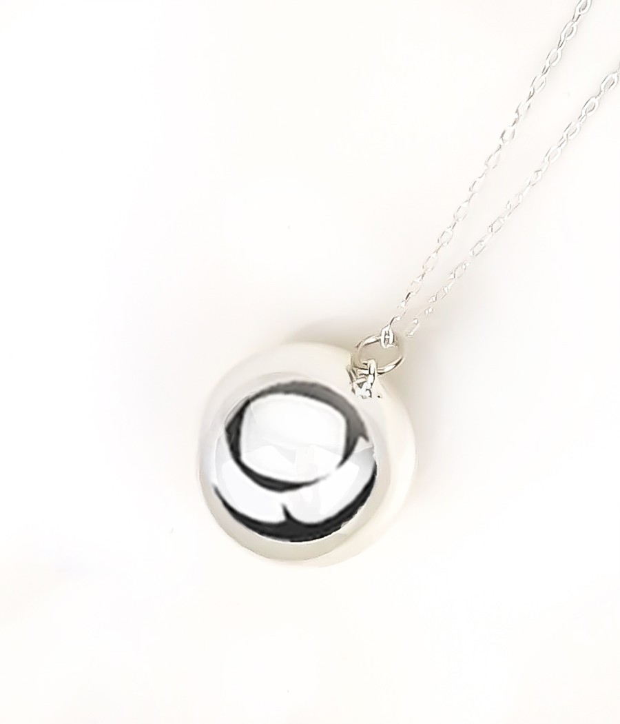 Srebrny naszyjnik z delikatnie dzwoniącą kuleczką, której brzmienie delikatnie uspokaja, tworzy aurę błogości i harmonii.
