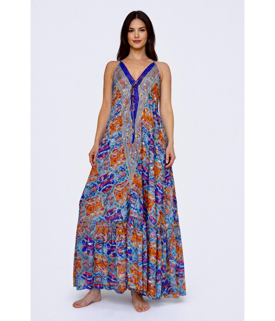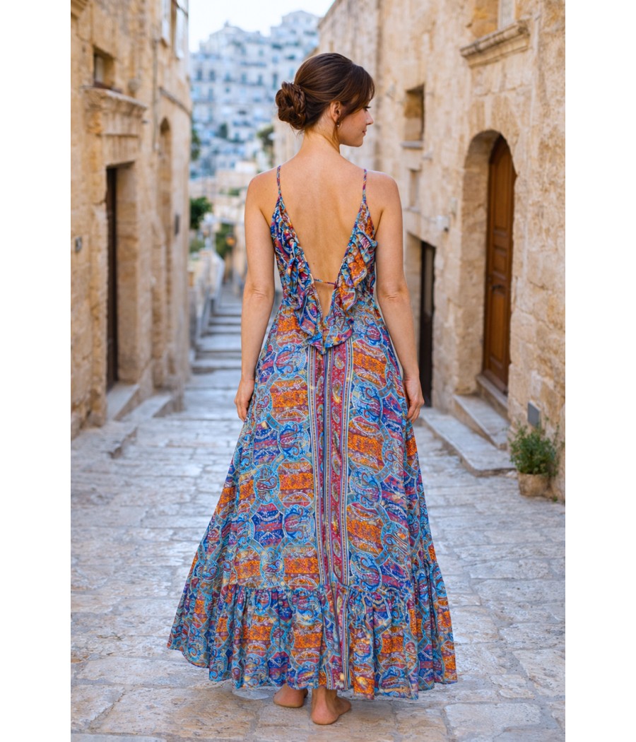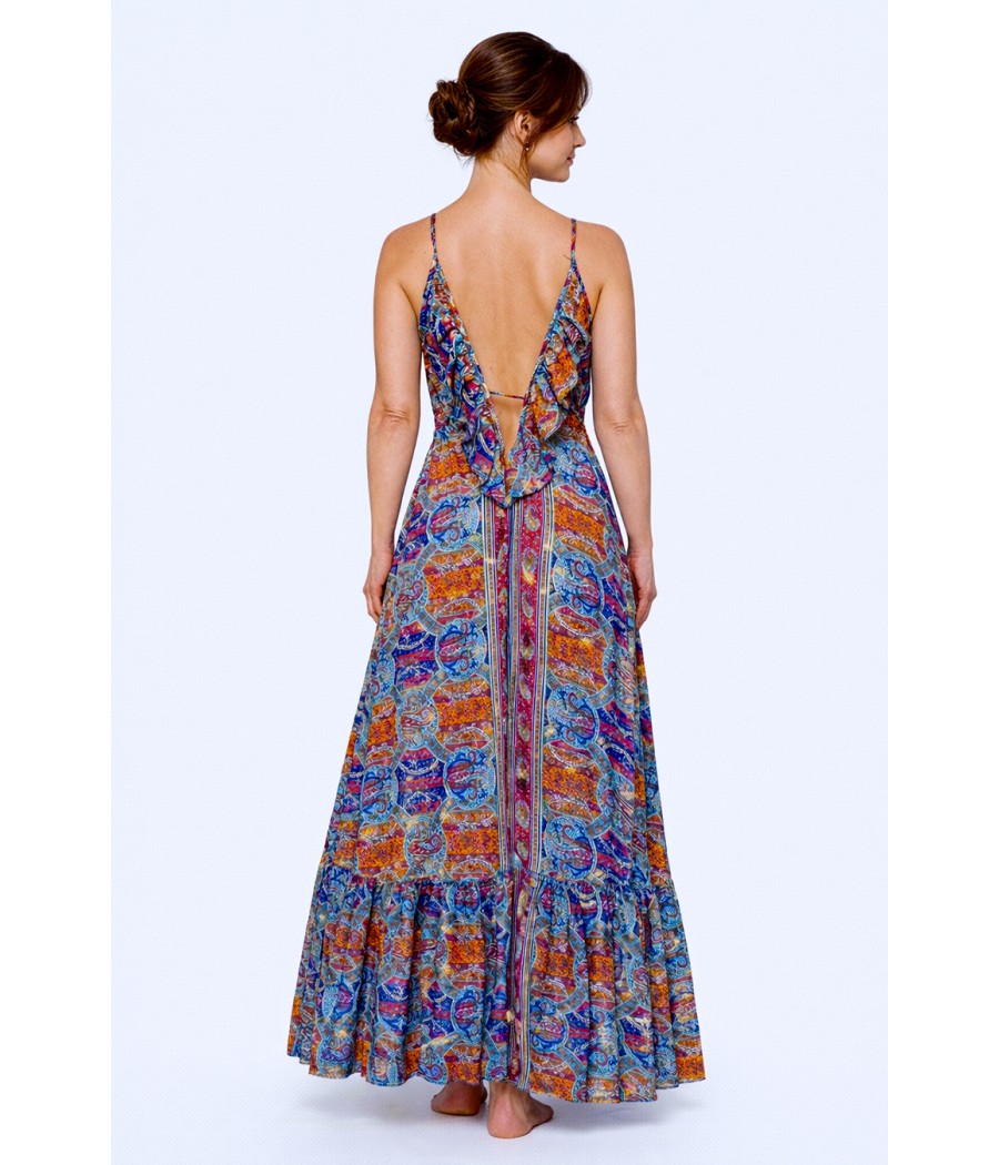 Delikatny, chłodzący materiał zapewni Ci komfort w ciepłe dni, a odkryte plecy dodadzą Ci seksapilu i kobiecego uroku. Regulowane ramiączka dostosowują się do Twojej sylwetki, a opcja przewiązania w talii dodaje klasy.