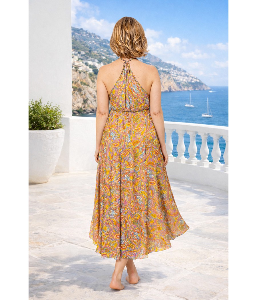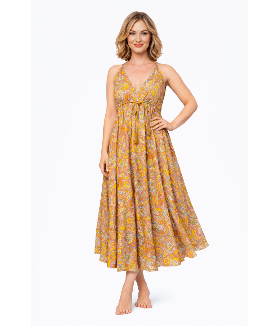Ta długa sukienka z rayonu jest idealnym wyborem! Dzięki miękkiemu i delikatnemu w dotyku materiałowi będziesz czuć się wyjątkowo i komfortowo przez cały dzień. Regulowane ramiączka pozwalają na idealne dopasowanie sukienki do Twojej sylwetki. Możesz ją nosić luźno albo przewiązać dodatkowo wokół pasa sznureczkiem.