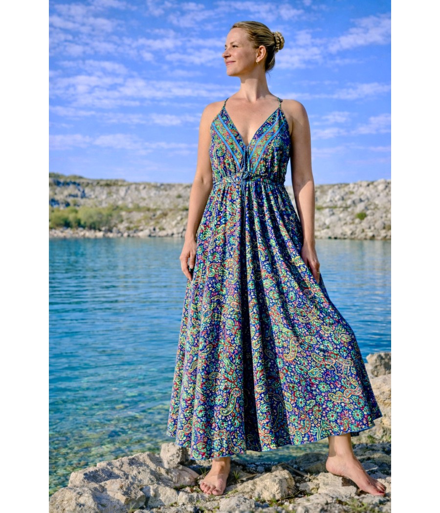 Wybierz sukienkę, która płynnie przechodzi z dnia w noc. Ta długa sukienka z rayonu gwarantuje wygodę i elegancję w każdych warunkach. Delikatny materiał otuli Twoją skórę, a regulowane ramiączka zapewnią idealne dopasowanie. Użyj sznureczka, by zaakcentować talię i dodać strojowi indywidualnego charakteru. Idealna na każde spotkanie – od pracy po przyjęcie.
